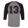 #13 two tone raglan with front and back print.