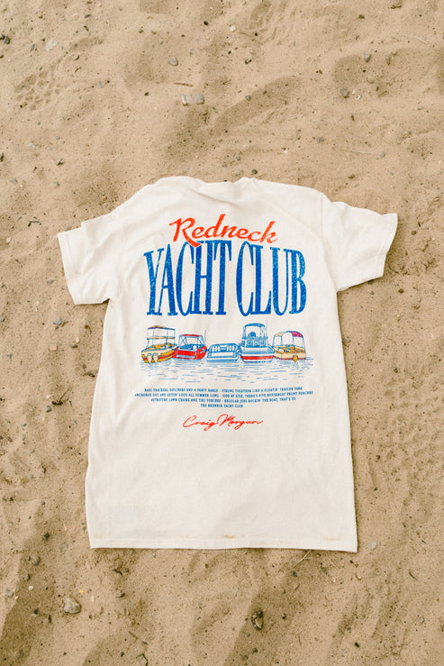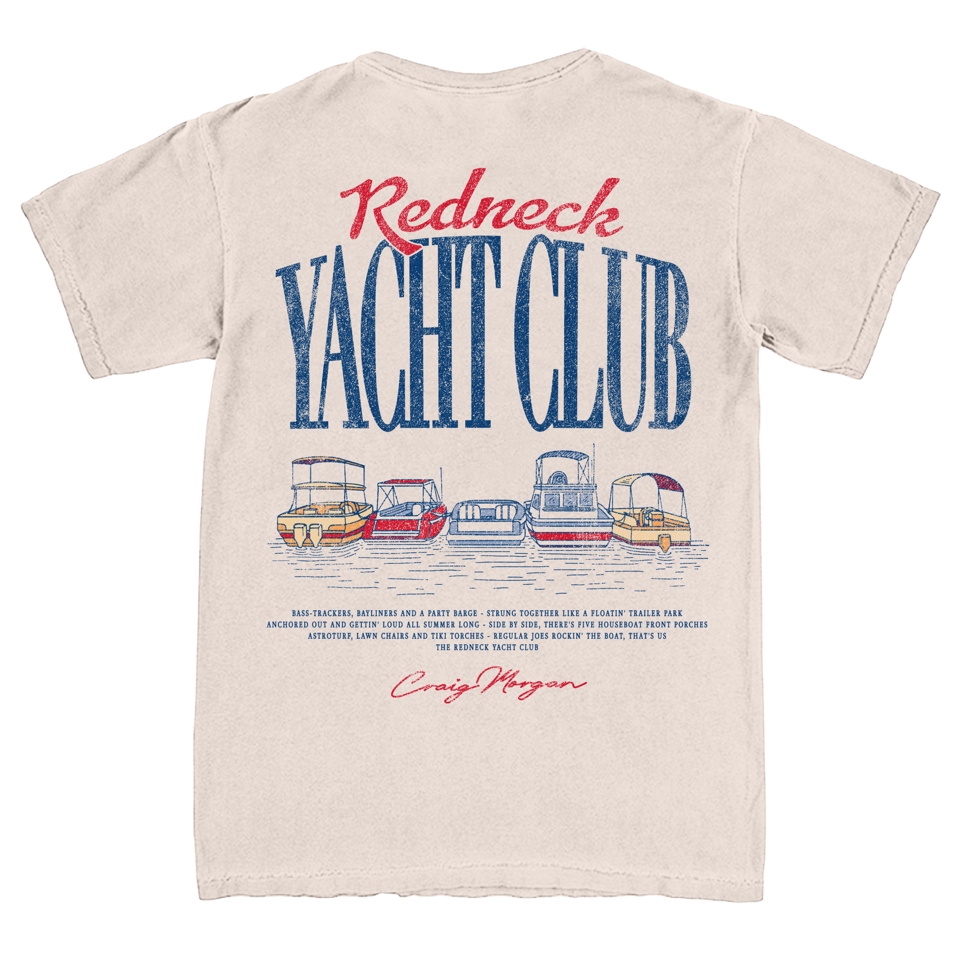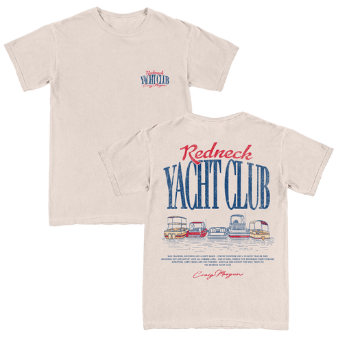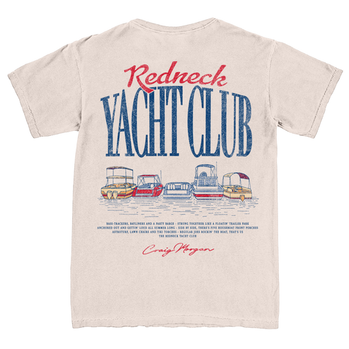 Redneck Yacht Club Tee in "natural" with front and back print.